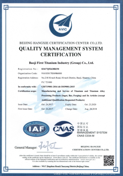 Baoji Westbury Metal Co.,Ltd была основана в 2006 году. Это высокотехнологическое предприятие, сертифицированное государством. Компания расположена по адресу: ул. Хай-тек, д. 186, Баоджи, занимает площадь 45 000 квадратных метров и имеет зарегистрированный капитал в размере 80 миллионов юаней. Мы специализируемся на выплавке, ковке и механической обработке титана и титановых сплавов. Инвестиции в оборудование составили 300 миллионов юаней. Наши основные продукты включают титановые бруски, кольца, трубы, пластины, проволоку, стандартные детали, а также материалы из таких редких металлов, как вольфрам, молибден, цирконий, гафний, ниобий, никель и другие.